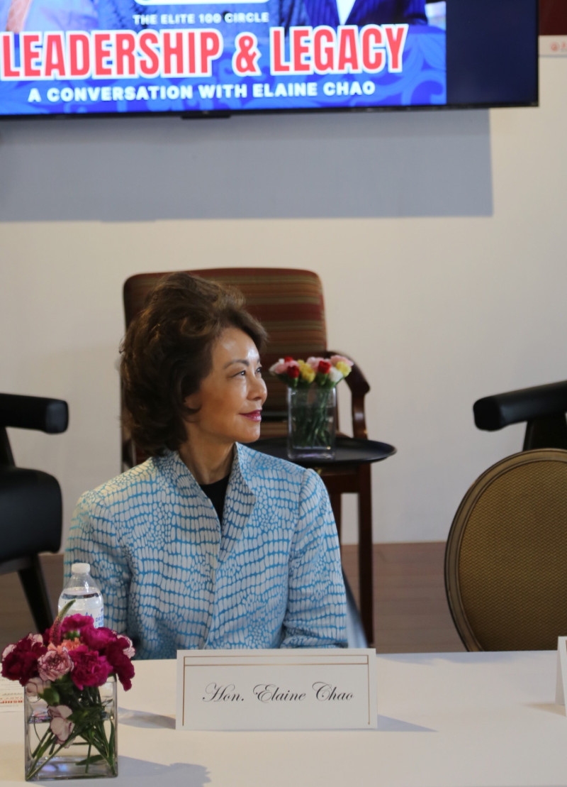 【本报讯】2026年4月23日,美国前交通部长、前劳工部长赵小兰(Elaine Chao)再访休士顿,蒞临美南报业总部,出席由「Elite 100 Circle」主办的高端论坛「Leadership & Legacy(领导力与传承)」,并参观新落成的德州第一银行新大楼,与侨界及各界人士广泛交流。