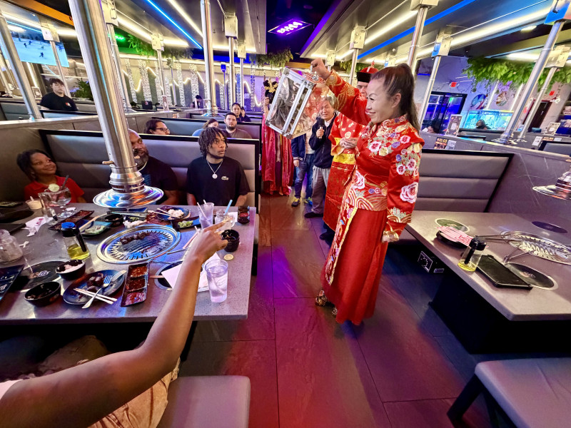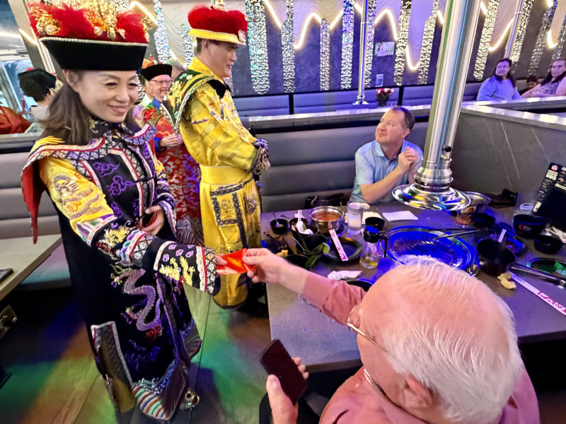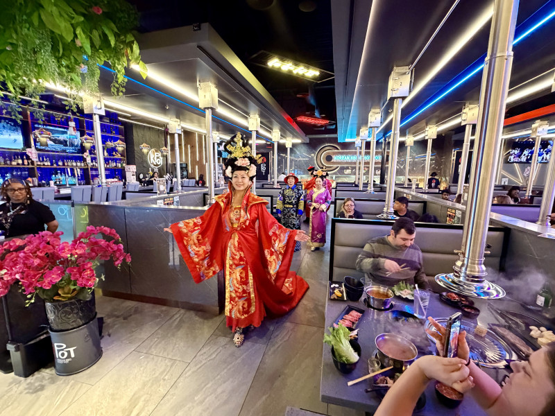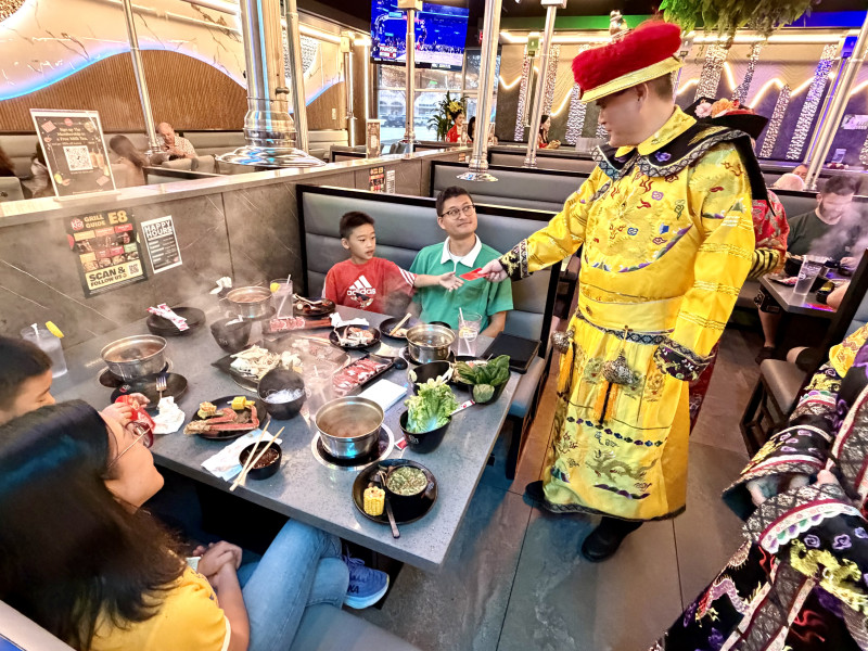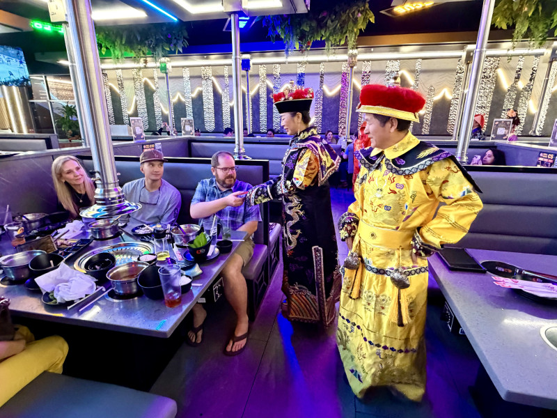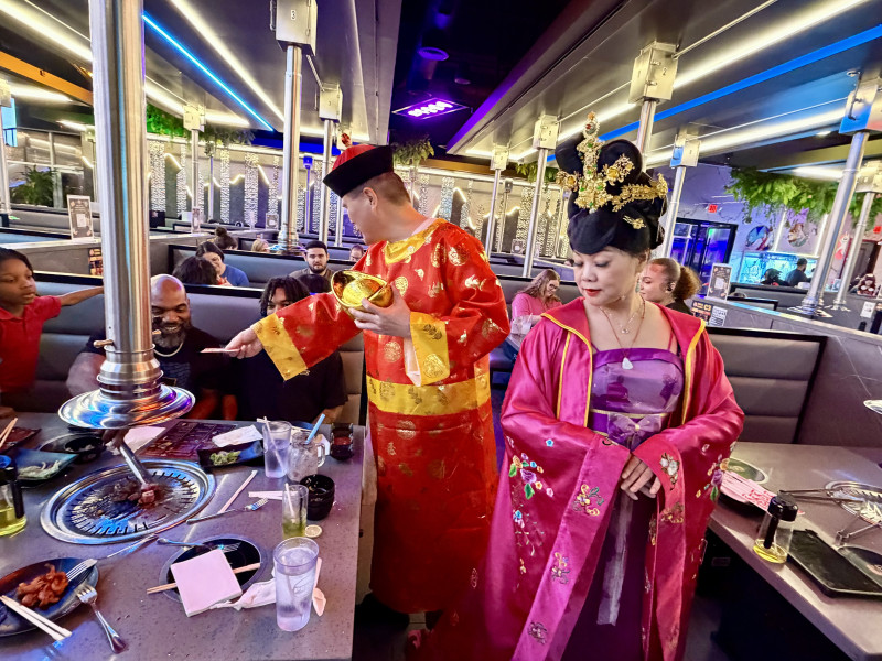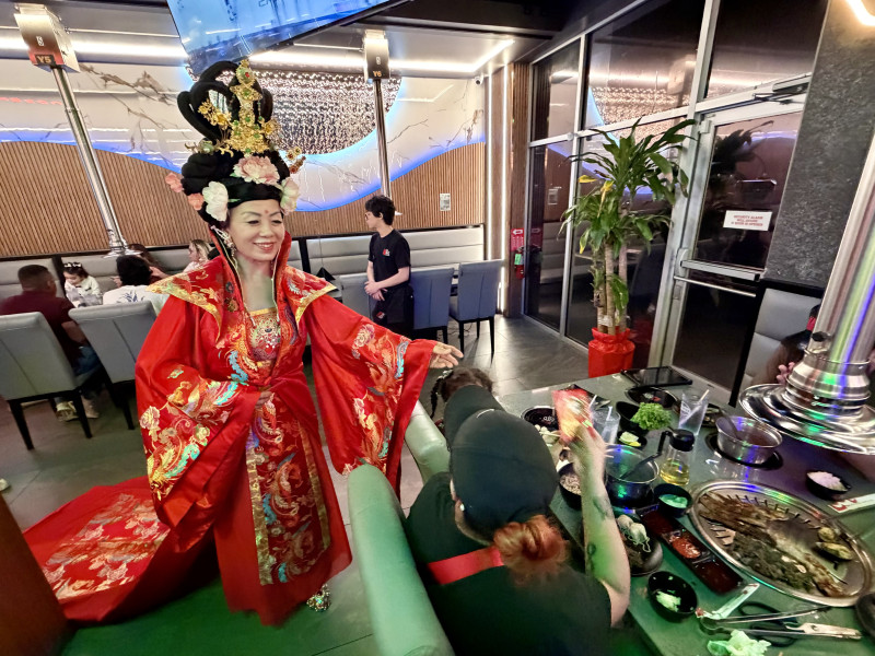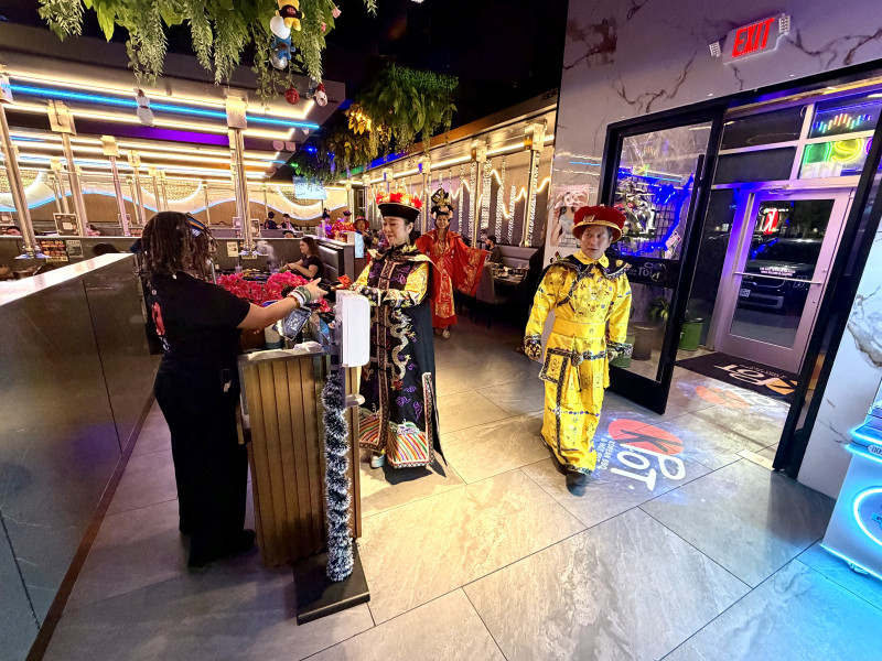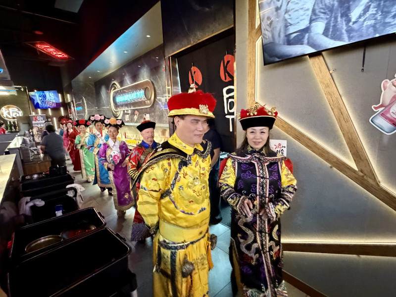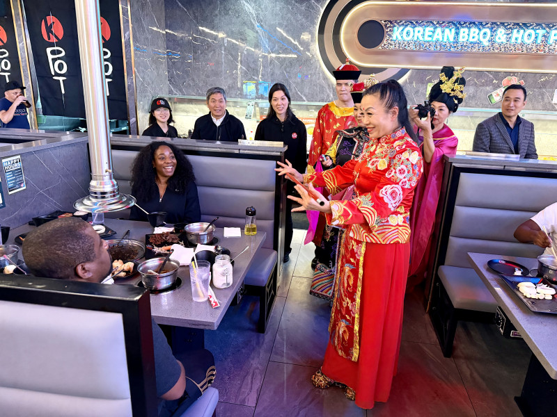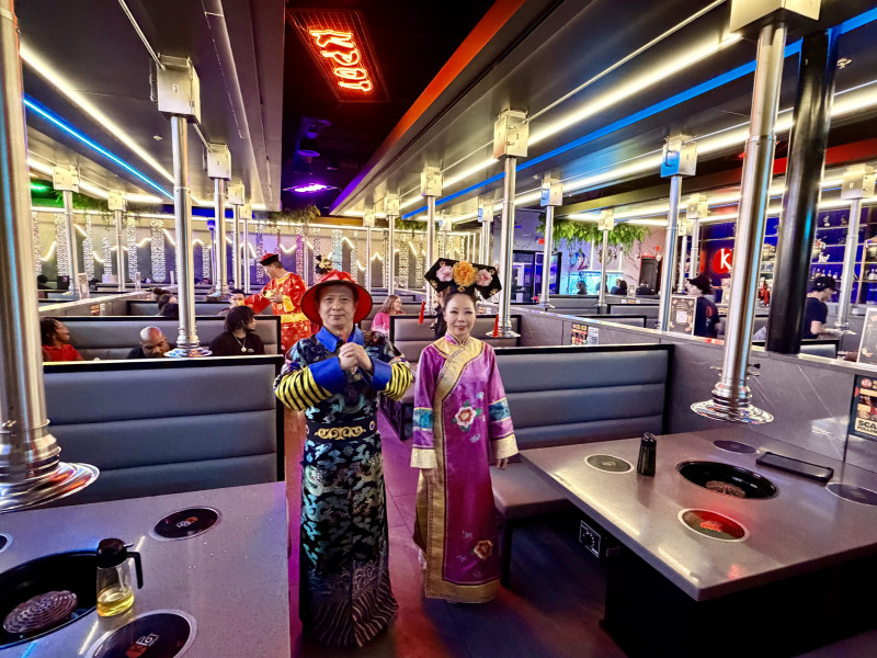 ——唯一女皇“武则天”现身,清宫人物巡席赐福【美南新闻泉深】2月26日下午2时30分至晚9时,位于17937 I-45 N, Suite 115, Shenandoah, TX的Korean BBQ & Hot Pot餐厅内灯火辉映、热气蒸腾,一场以“宫廷盛宴·感恩迎春”为主题的农历新年庆典在此隆重举行。这不是一场普通的节日聚会,而是一场跨越时空的文化演绎。清朝皇帝、皇后、管家、妃嬪巡席赐福,财神爷派发红包,唐代唯一女皇