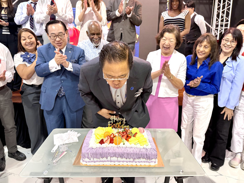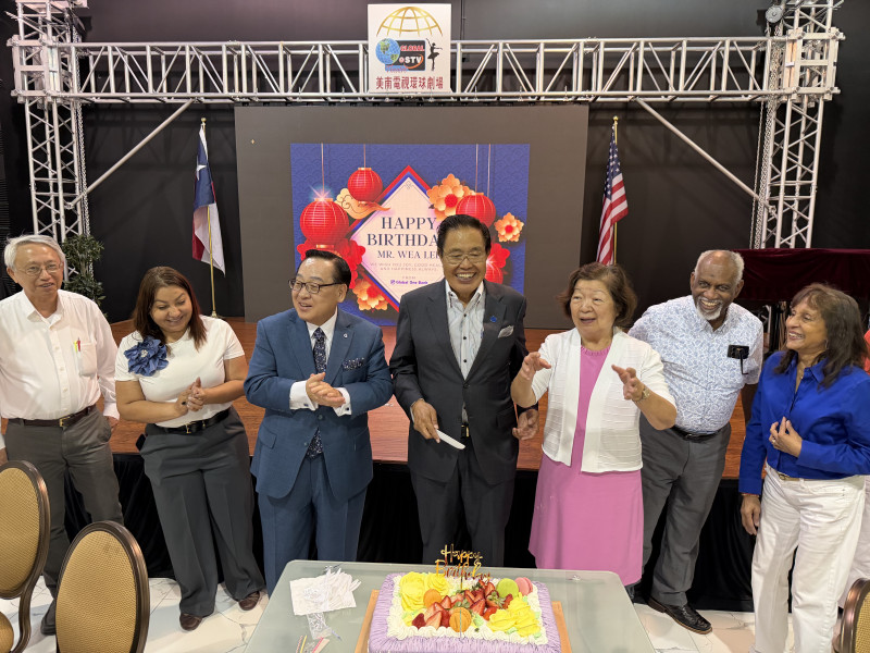 【美南新闻泉深】2026年3月24日,环球第一银行(Global One Bank)在美南环球剧场温馨举办一场别具意义的生日庆典,为该行创始人,同时也是美南新闻传媒集团董事长、国际贸易中心主席、休斯顿国际区区长李蔚华先生庆祝生日。李蔚华先生的生日为3月29日,因其近日赴台湾访问,银行同仁特意将庆典提前举行,以表达诚挚祝福与崇高敬意。当日活动在温馨而庄重的氛围中进行。现场悬挂“Happy Birthday Mr. Wea Lee”的背景屏幕,红灯笼与花饰交相辉映,洋溢着浓厚的东方喜庆气息。来自环球第一银行与美南新闻传媒集团的员工及嘉宾30余人齐聚一堂,共同见证这一温暖而难忘的时刻。